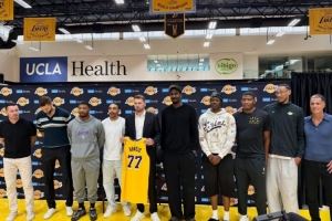 其中,湖人主教练雷迪克、总经理佩林卡出席发布会,还包括克莱伯、斯玛特、文森特、艾顿、阿杜-蒂耶罗、范德比尔特(未入镜)、八村塁、海斯也出席了新闻发布会。
