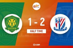 上半场伤停补时6分钟,半场结束,北京国安暂1-2上海申花。