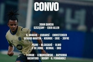 巴萨客战奥维耶多大名单:莱万领衔锋线,亚马尔缺席小将德罗在列