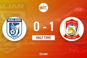 半场-大连英博0-1青岛西海岸 阿齐兹扫射破门