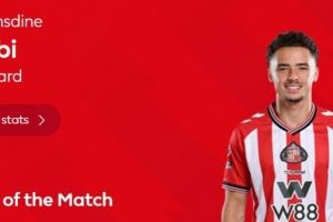 打进绝杀,英超官方:塔尔比当选桑德兰2-1切尔西全场最佳球员