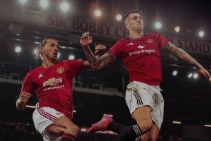 体育资讯8月6日讯 433社媒晒出伊布与塞斯科身穿曼联球衣的图片,库尼亚点赞。